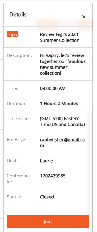 - During the Live Session meeting, your host will facilitate the session and share their screen for presentations. Throughout the meeting, you'll have the capability to add products to your Cart, specifying sizes and store locations for each item.