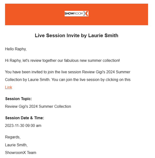 Option 2: Alongside the meeting being added to your Calendar, you will also receive an email invitation to join the Live Session meeting. Simply click on the provided "Link" in the email to join the meeting directly.