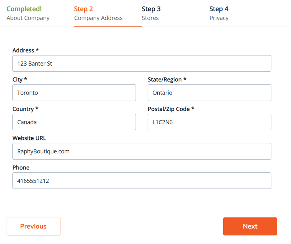 Step 2- enter all your company's address information